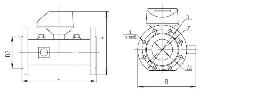 ГАБАРИТНЫЕ И ПРИСОЕДИНИТЕЛЬНЫЕ РАЗМЕРЫ СЧЕТЧИКОВ СГ16МТ (фланцевое исполнение)